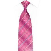 Pink Geometric & Striped Rhinestones On Silver Silk Necktie