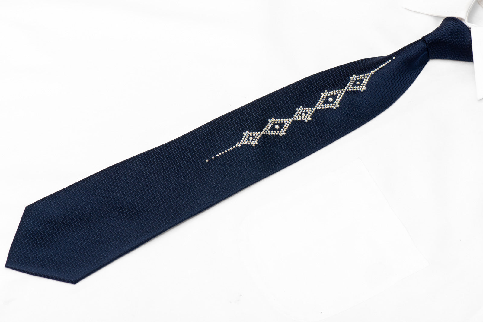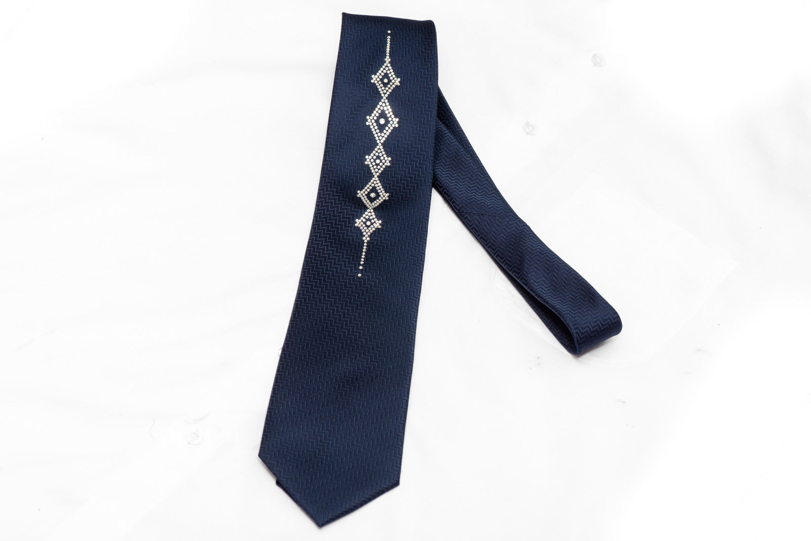 Entwurf -GeometricFarbe-Navy BlueLänge - Classic (48 in.-60 in.)(145cm-153 cm)Breite - Classic (3 1/4 in.-3 3/4 in.)(8 cm-9.5 cm)Farb-Mix Navy BlueMustermix - Besonderheiten - Rhinestones