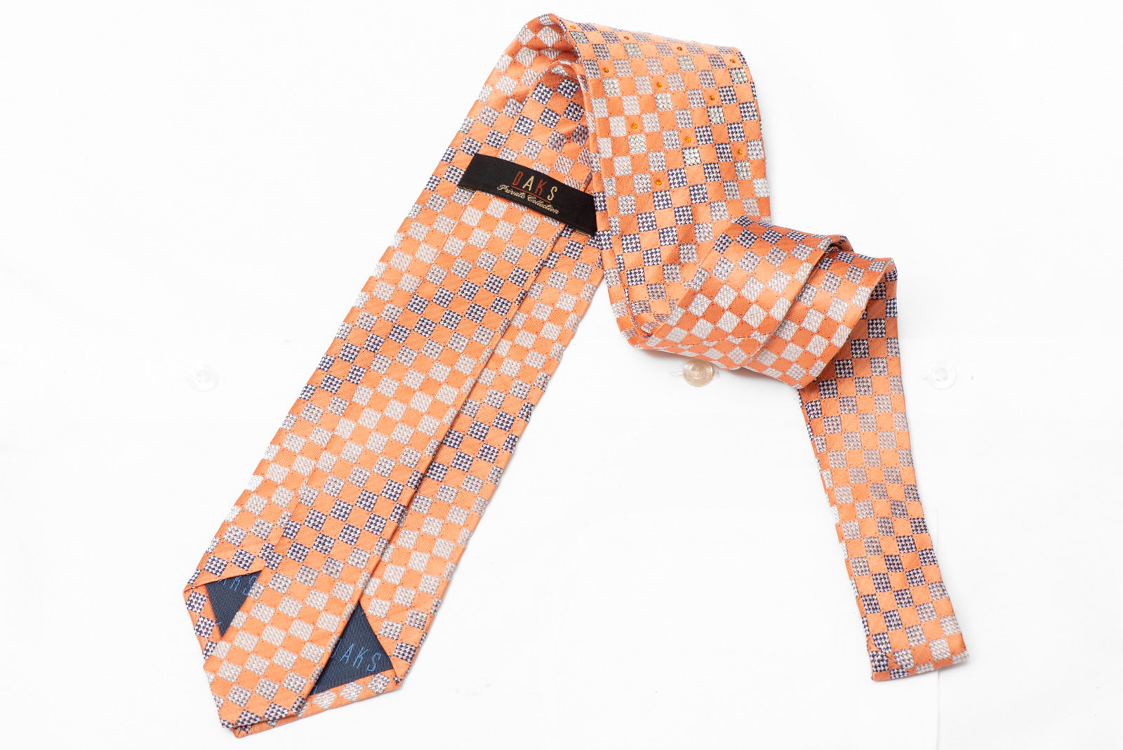 Elevate your formal attire with this exquisite woven silk tie featuring a sophisticated checker pattern in warm orange tones. This luxurious accessory combines traditional craftsmanship with contemporary embellishment, showcasing delicate rhinestones and silver sparkles that catch the light beautifully.