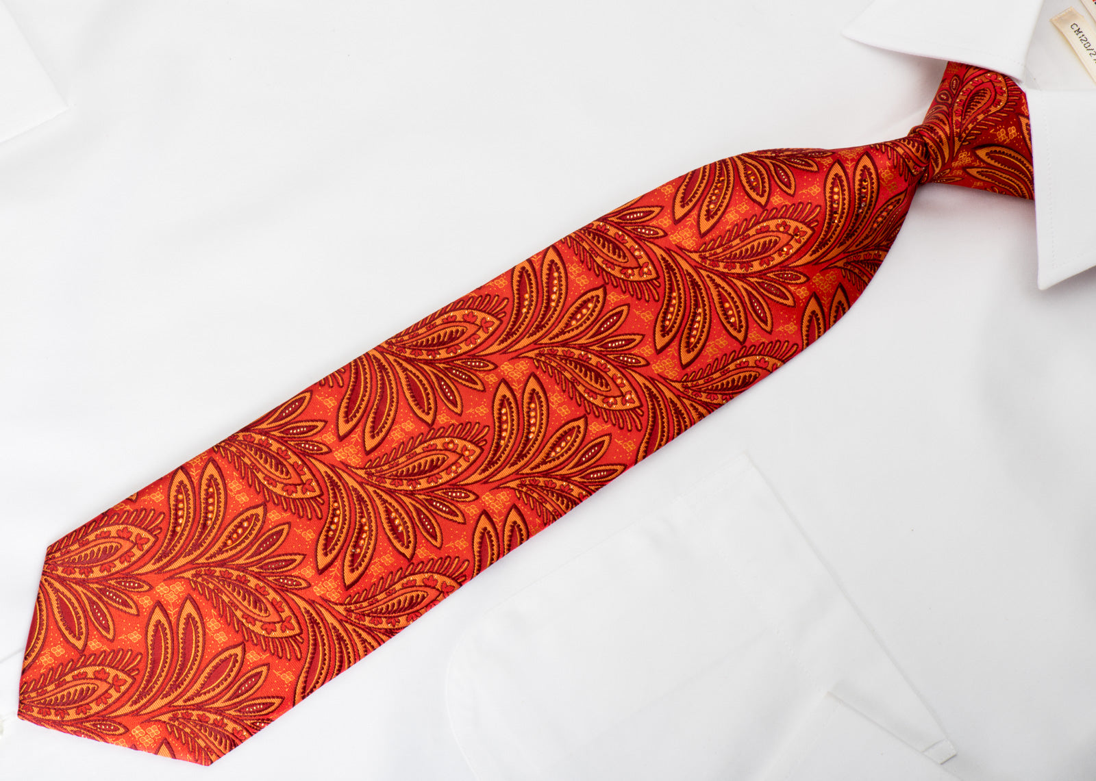Wunderschöne gewebte Strass-Krawatte aus Seide, handgefertigt aus feinster Seide und entworfen von der Top-Marke Taiyo Gold. Präsentiert ein wunderschönes Anthemion-Design auf orangefarbener gewebter Seide, funkelnd mit orangefarbenen Strasssteinen und goldenen Glitzern.