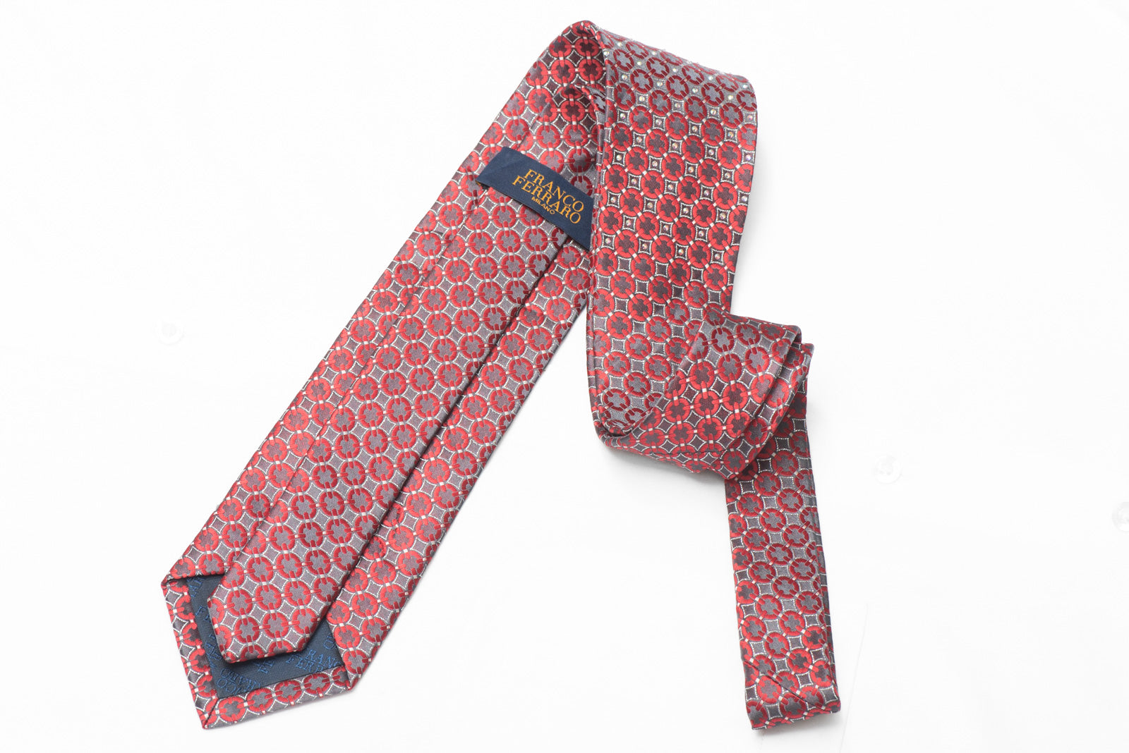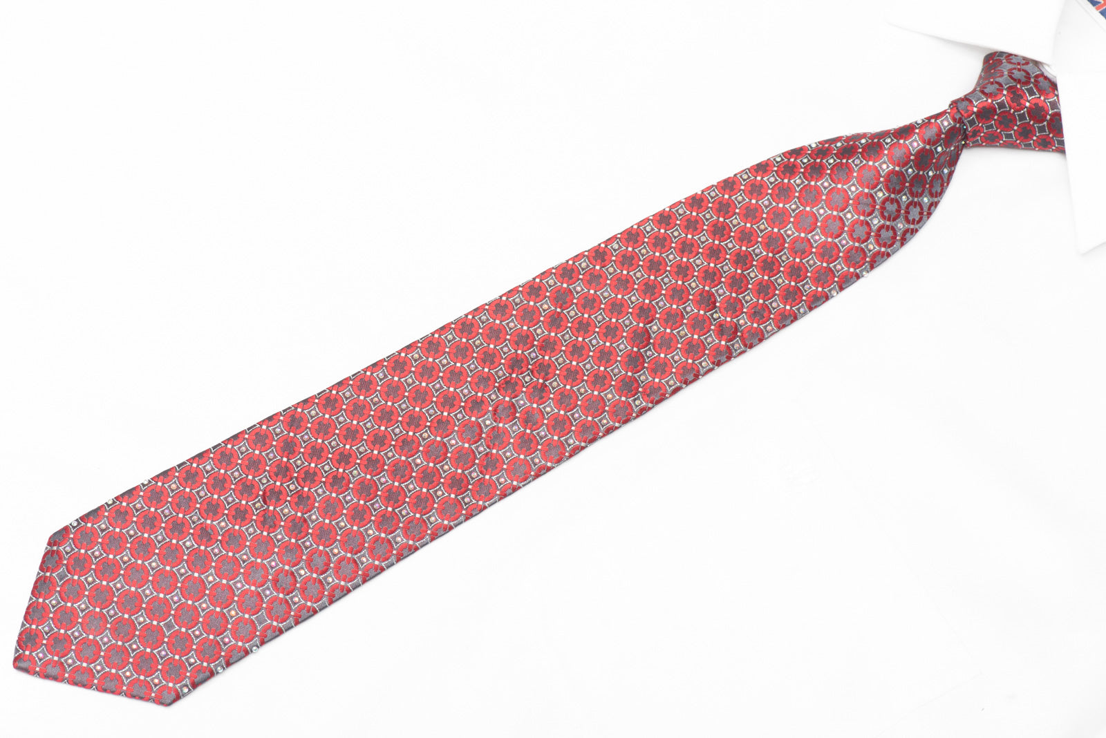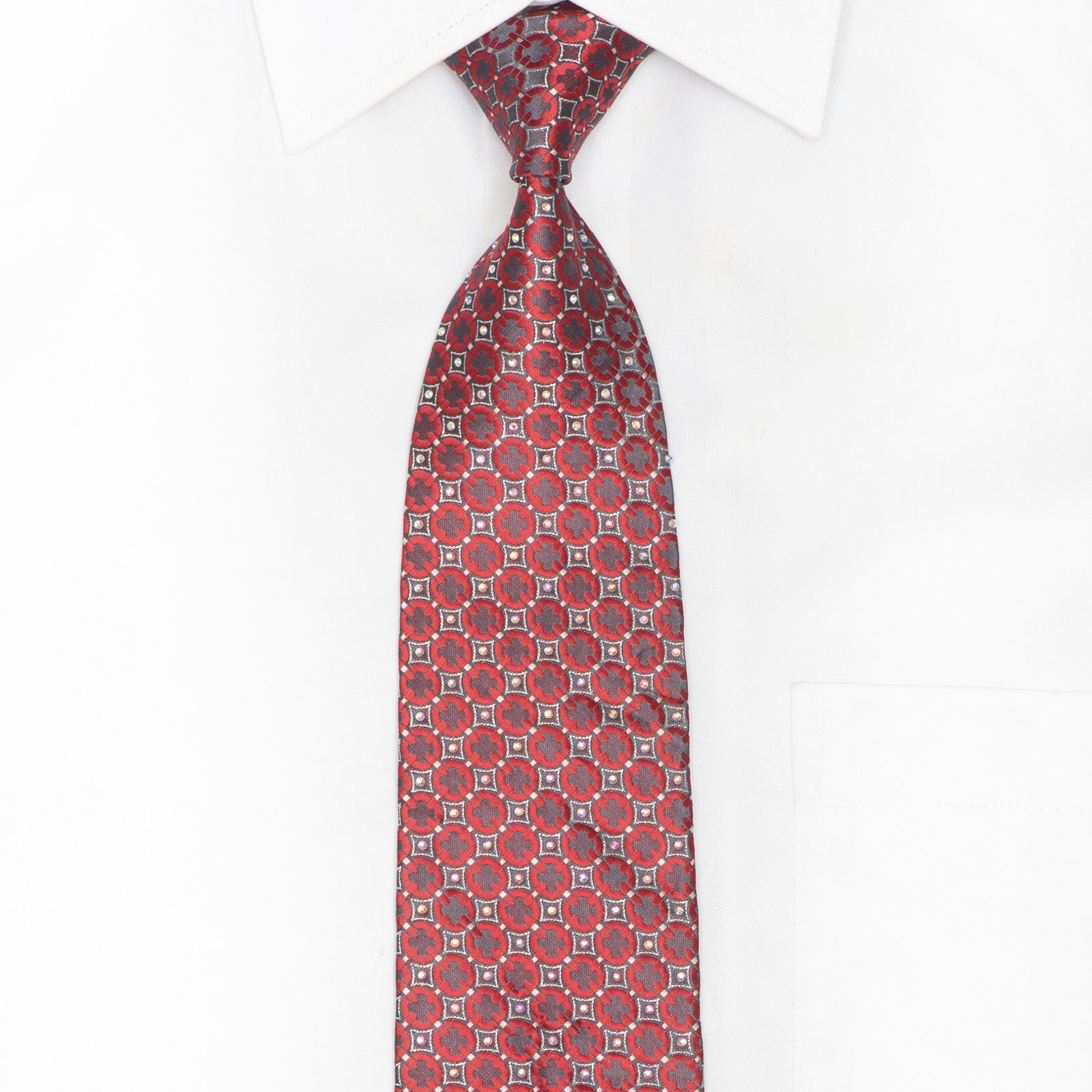 Silver Burgundy Geometric Rhinestone Silk Necktie