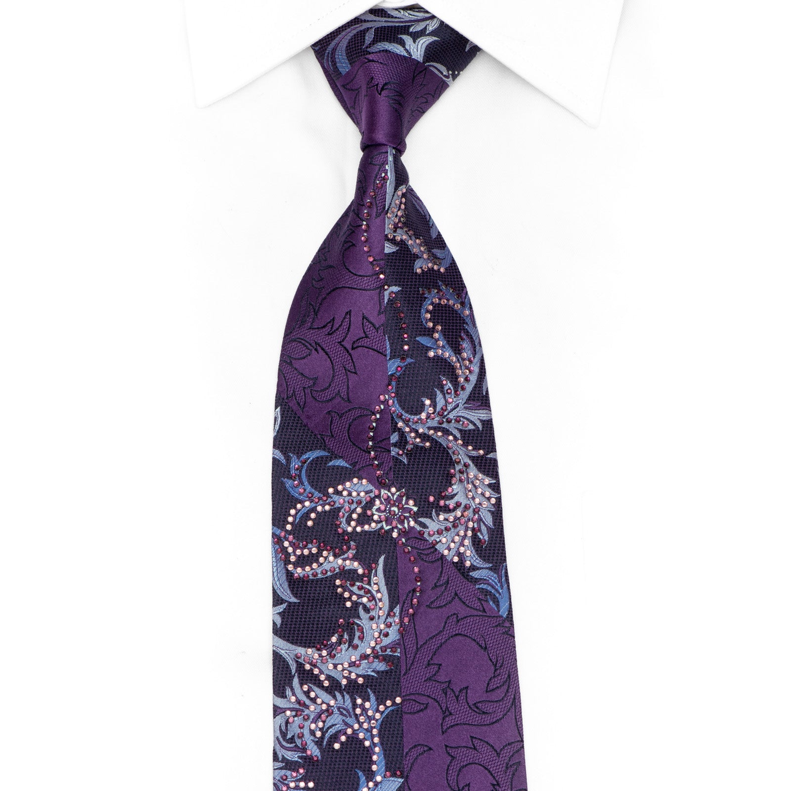 Material - SilkDesign - AcnthusColor - Blue, PurpleLength - Classic (48 in.-60 in.)(145cm-153 cm)Width - Classic (3 1/4 in.-3 3/4 in.)(8 cm-9.5 cm)Special Features - Rhinestones