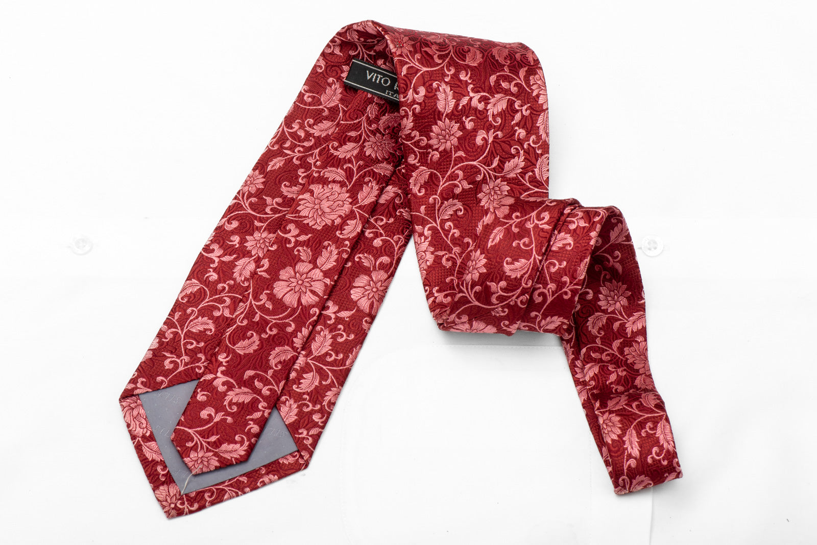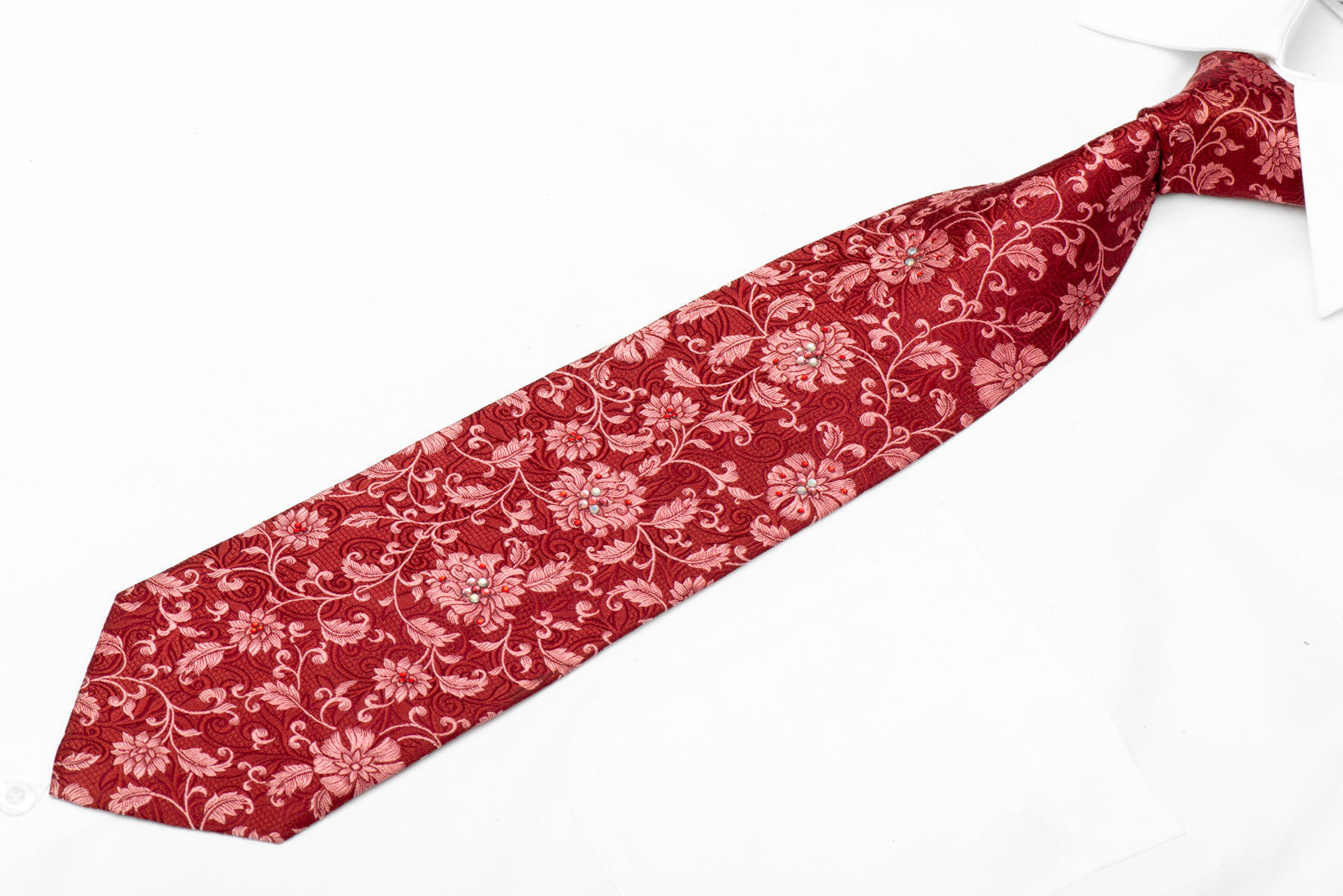 Floral Ob Dark Red Crystal Rhinestone Silk Tie