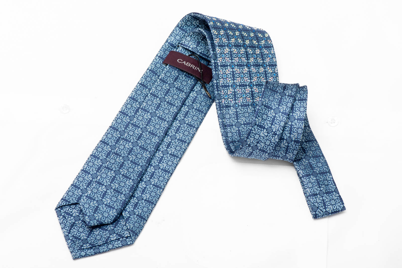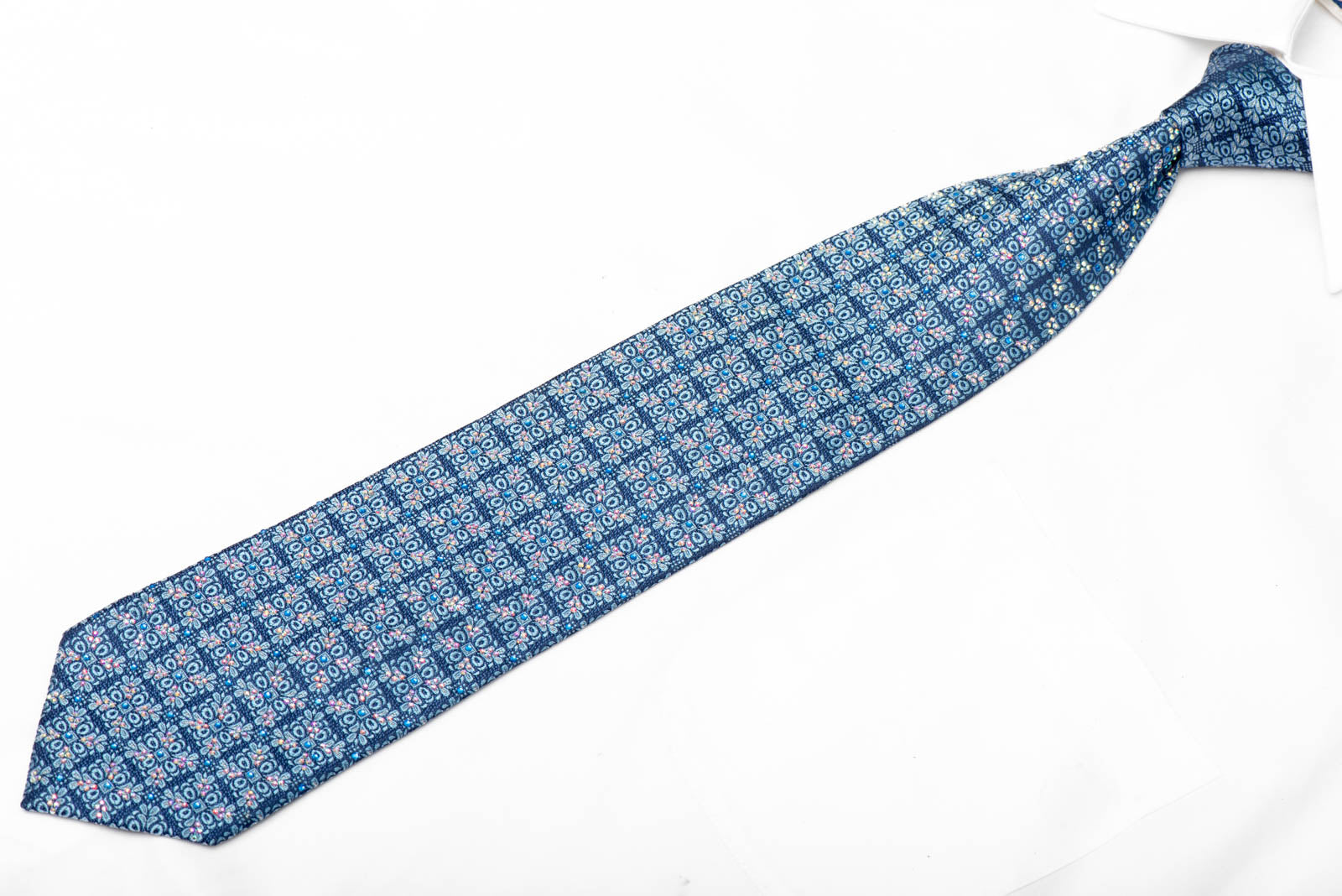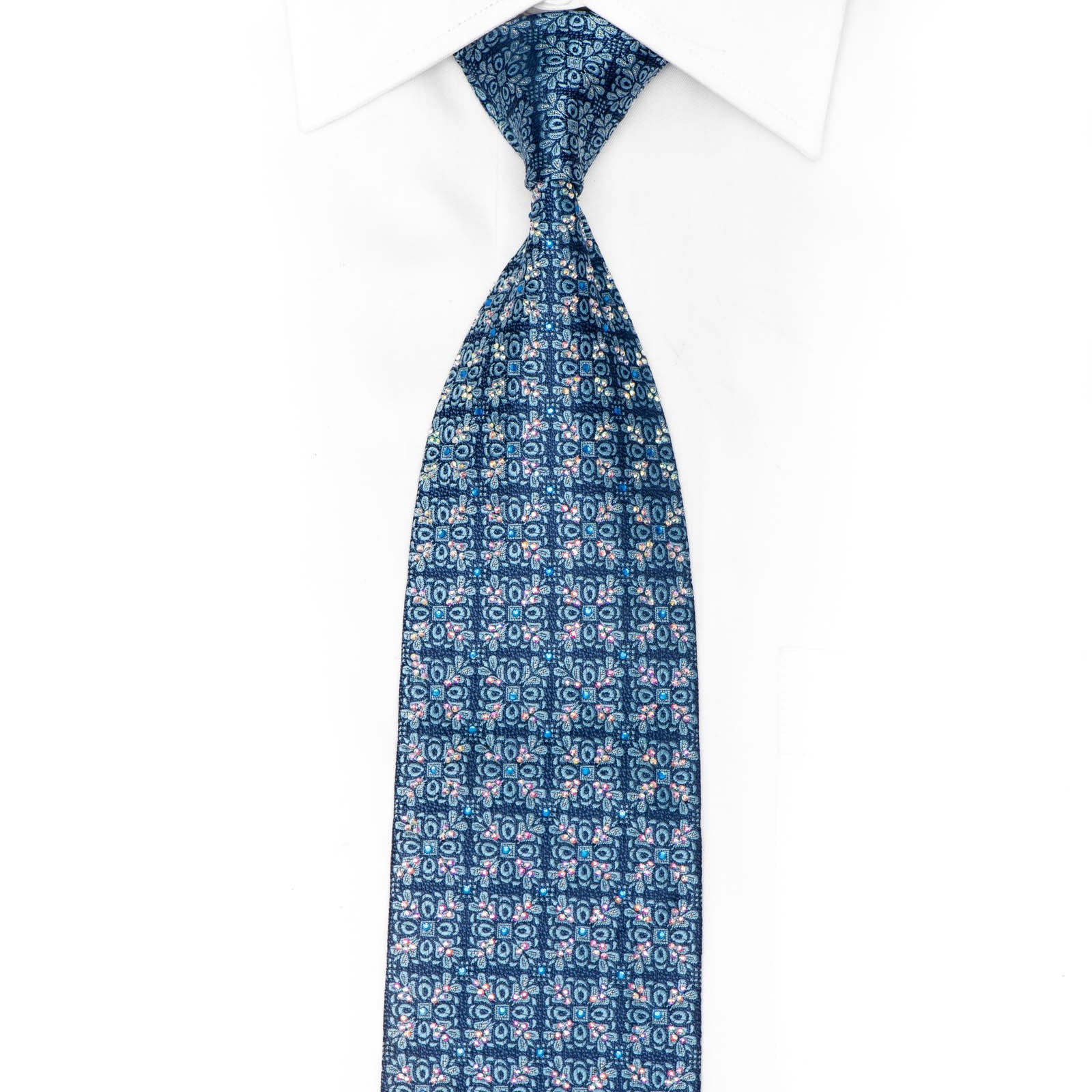Light Blue Cartouche On Blue Rhinestone Silk Tie - 1