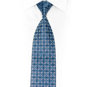 Light Blue Cartouche On Blue Rhinestone Silk Tie