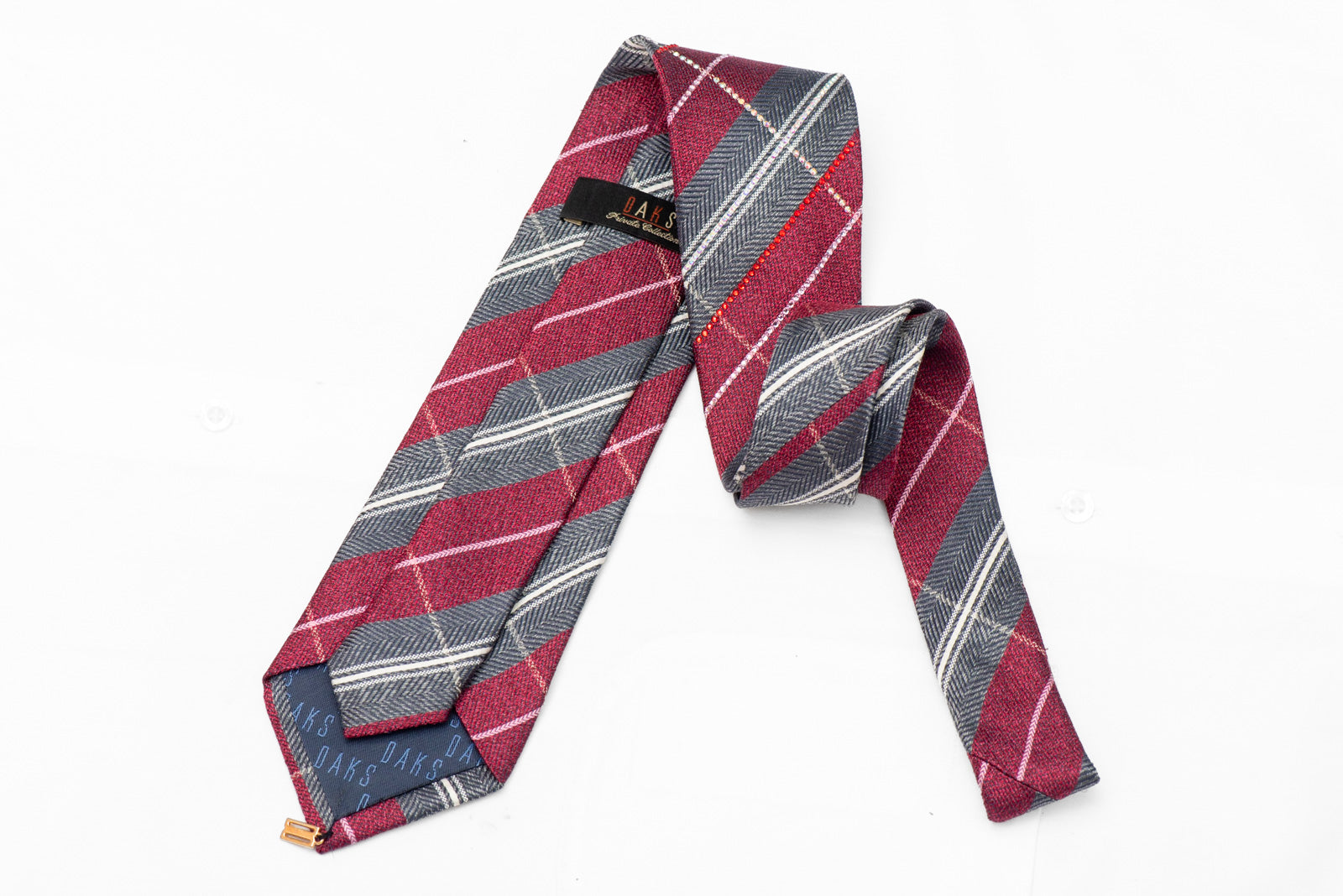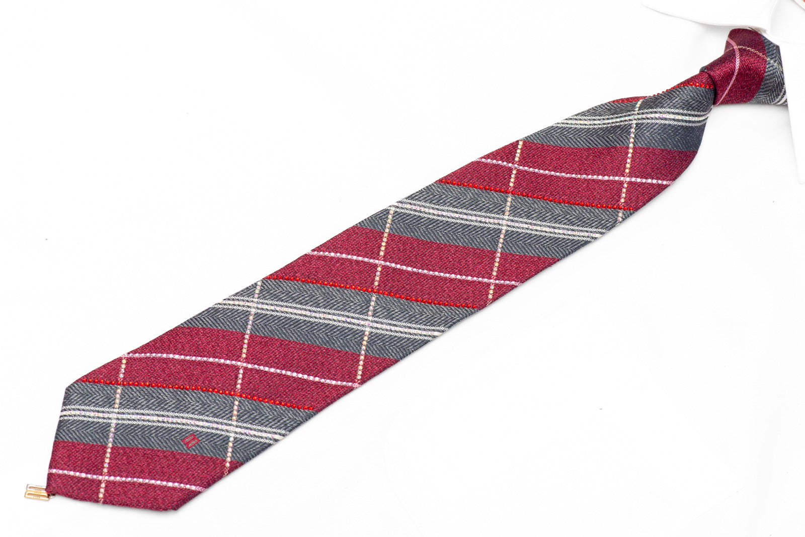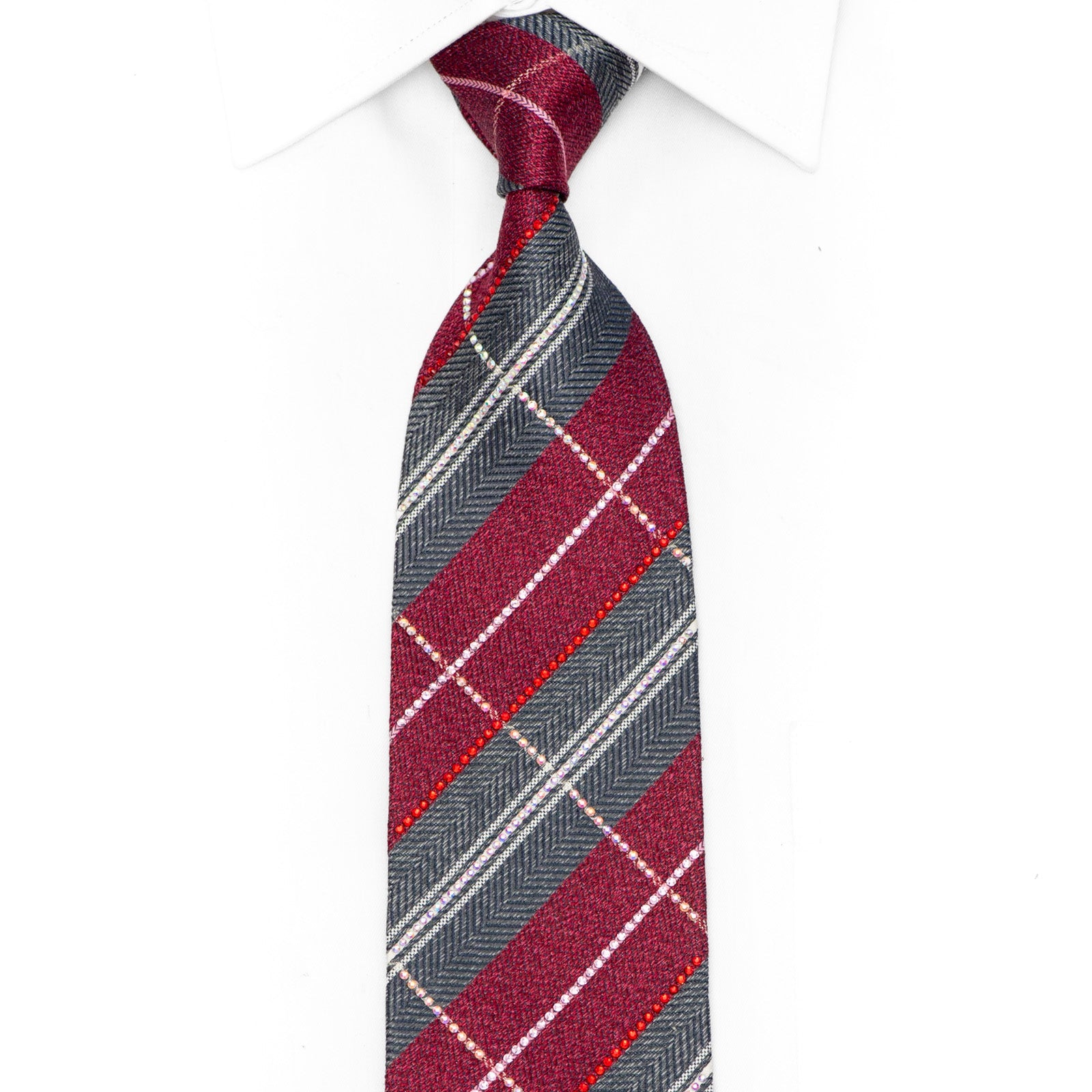 Maroon Gray Plaid Rhinestone Silk Necktie