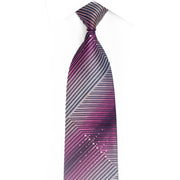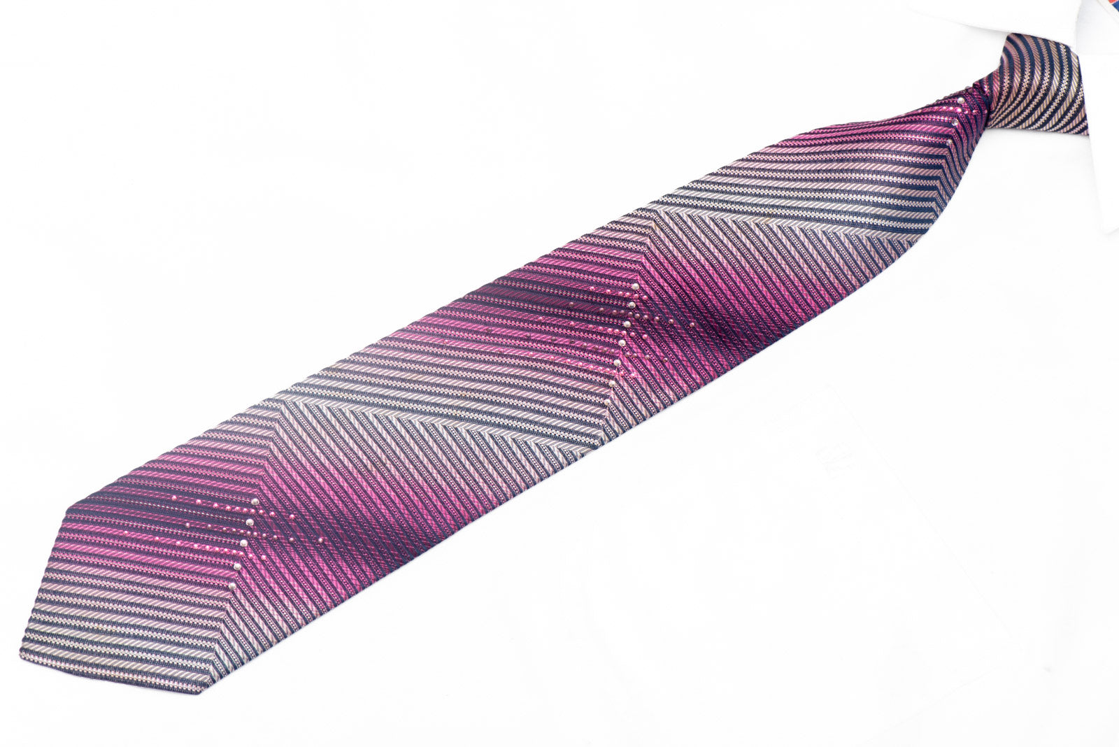Pink Geometric Striped On Navy Rhinestone Silk Tie