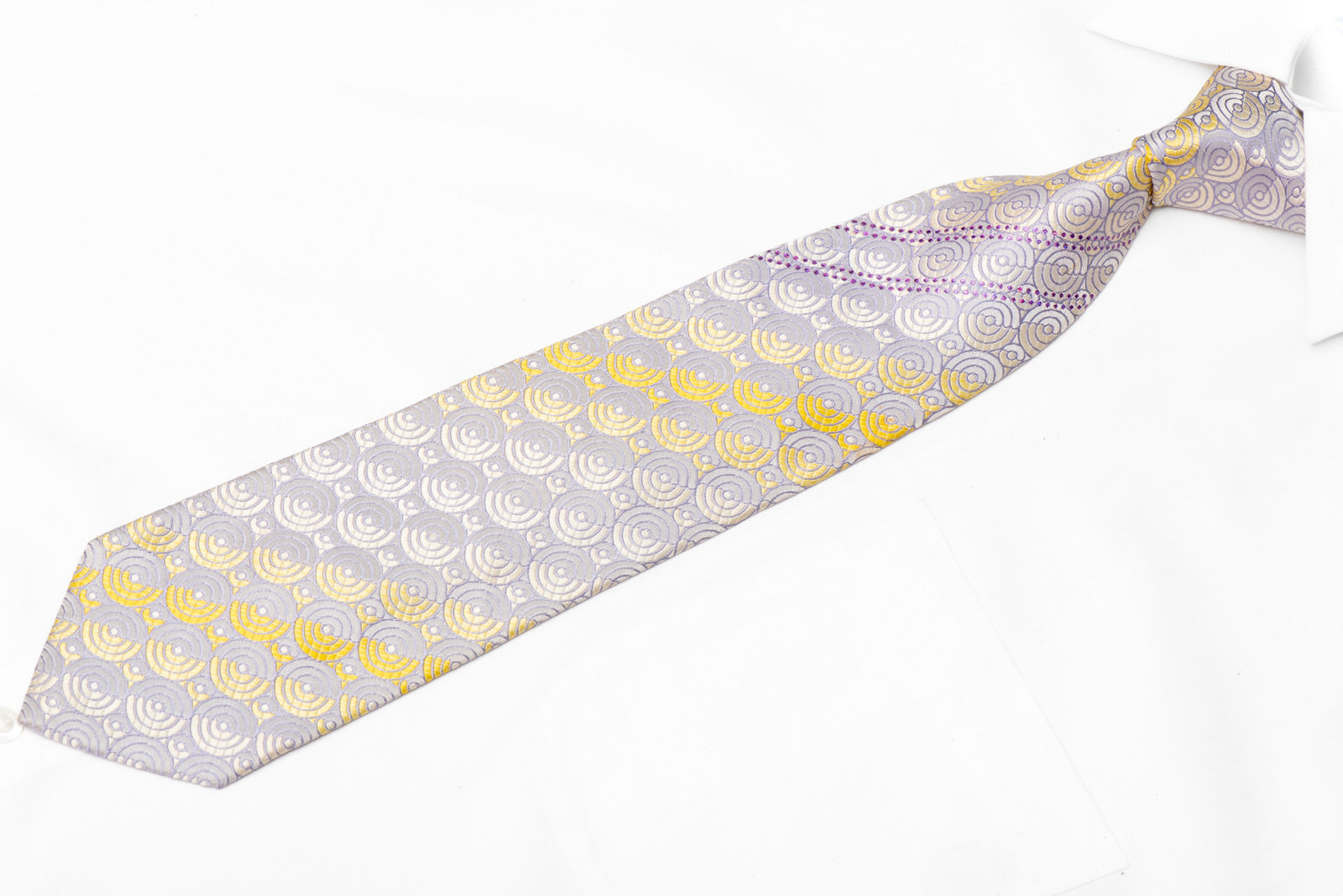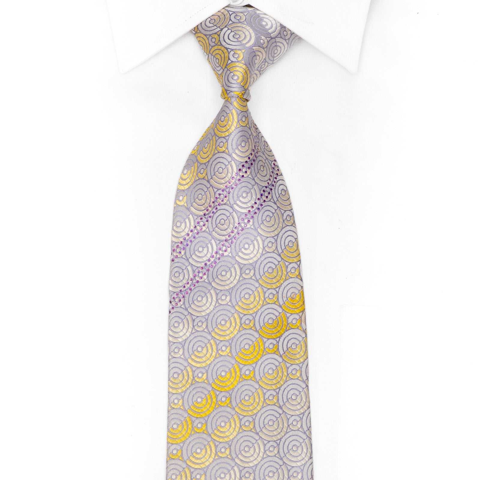 Purple Yellow Geometric On Mauve Silk Necktie With Purple Sparkles