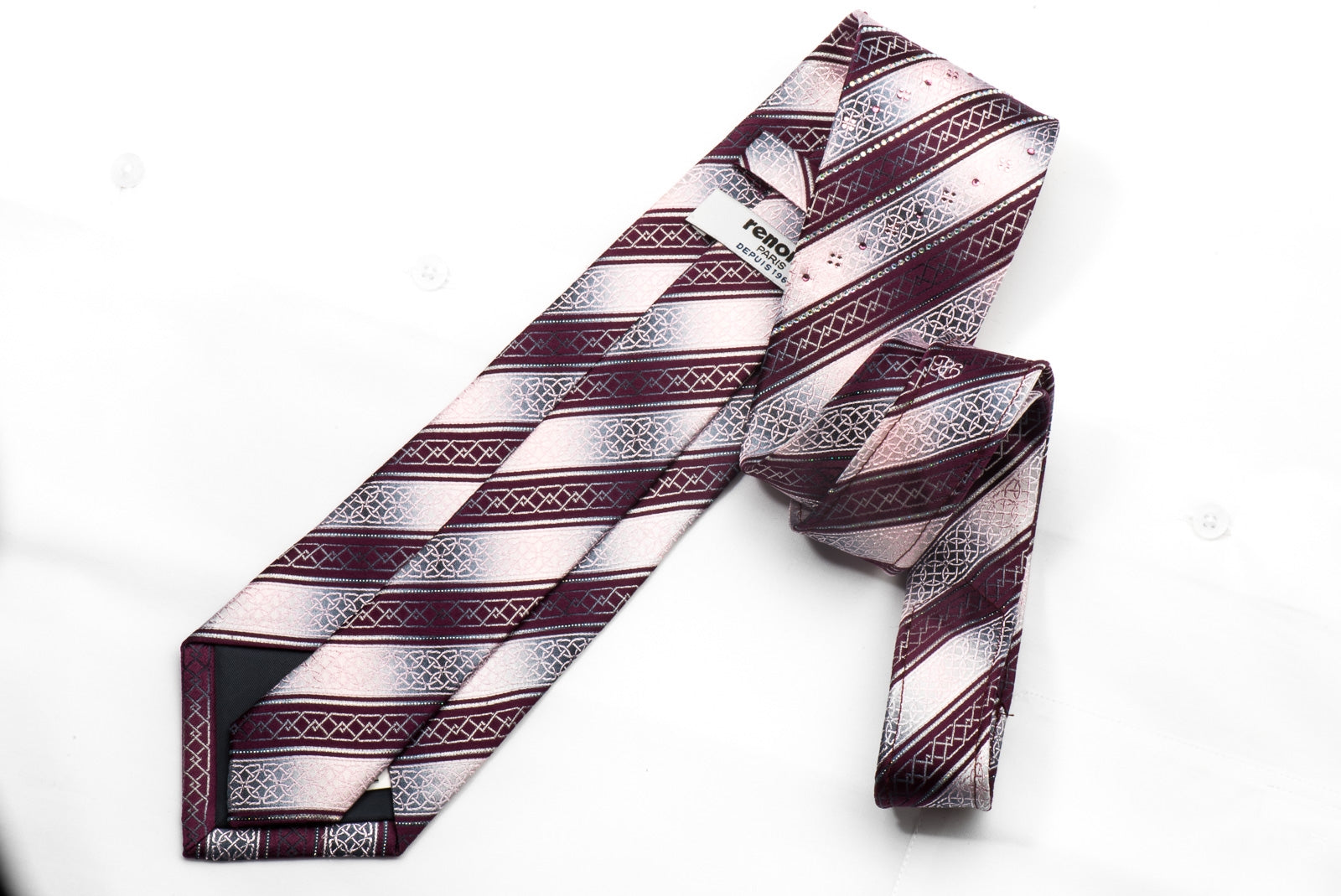 Renoma Men’s Silk Necktie Burgundy Striped Sparkling With