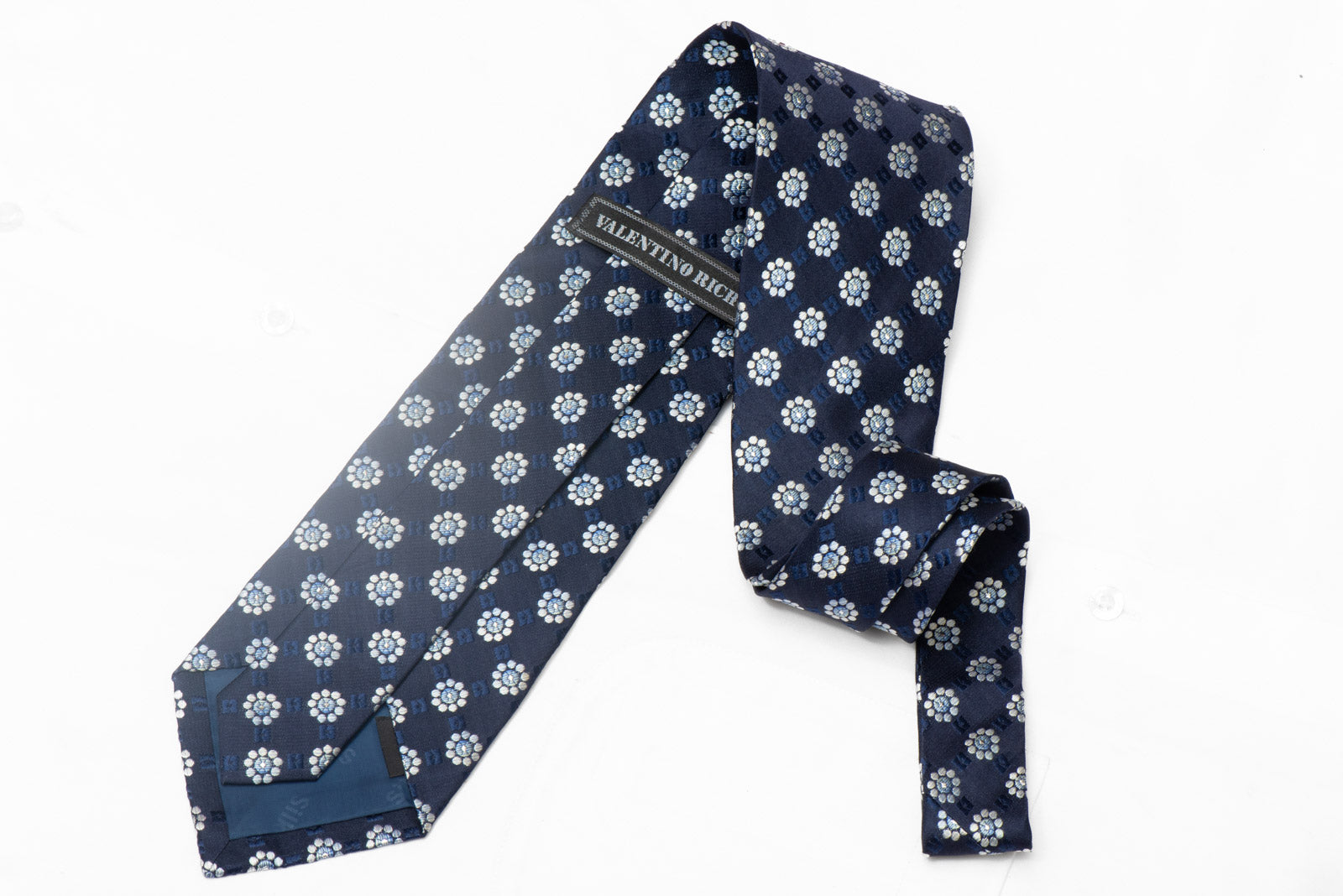 Experience elegance with our Silver Floral On Navy Rhinestone Silk Necktie. This stunning tie features delicate floral designs over a deep navy background, adorned with sparkling silver rhinestones for a touch of glamour. Perfect for adding a touch of sophistication to any outfit.