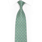 Add some sparkle to your wardrobe with this stunning Silver Geometric On Mint Green Rhinestone Silk Necktie. Made with a stylish combination of silver and mint green, this tie is sure to impress with its subtle shimmer. Perfect for any occasion, this tie is a must-have for any fashion-forward individual.