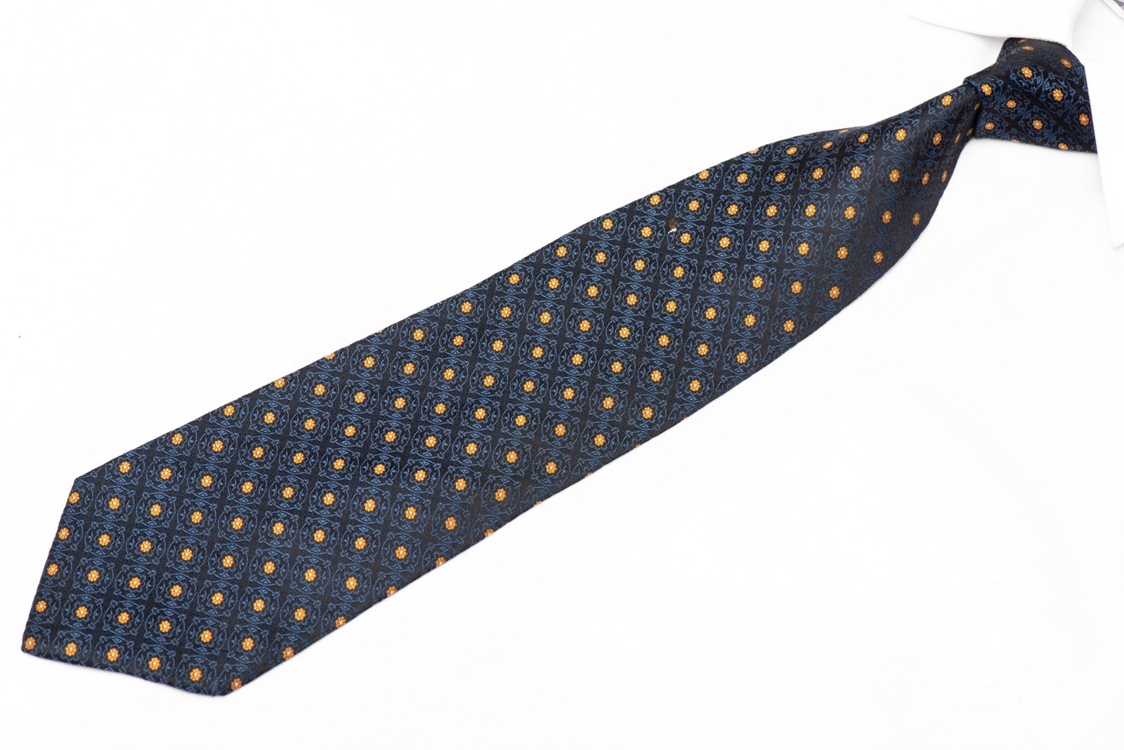 Make a refined statement with this elegant silk necktie, showcasing delicate yellow flowers and a sophisticated cartouche motif against a classic black canvas. Constructed from luxurious silk, this accessory seamlessly transitions from boardroom meetings to evening affairs, offering versatile sophistication. The intricate floral detailing demonstrates attention to quality and taste, while the understated black base ensures it pairs effortlessly with your existing collection. Ideal for the discerning gentleman seeking timeless elegance with artistic character.