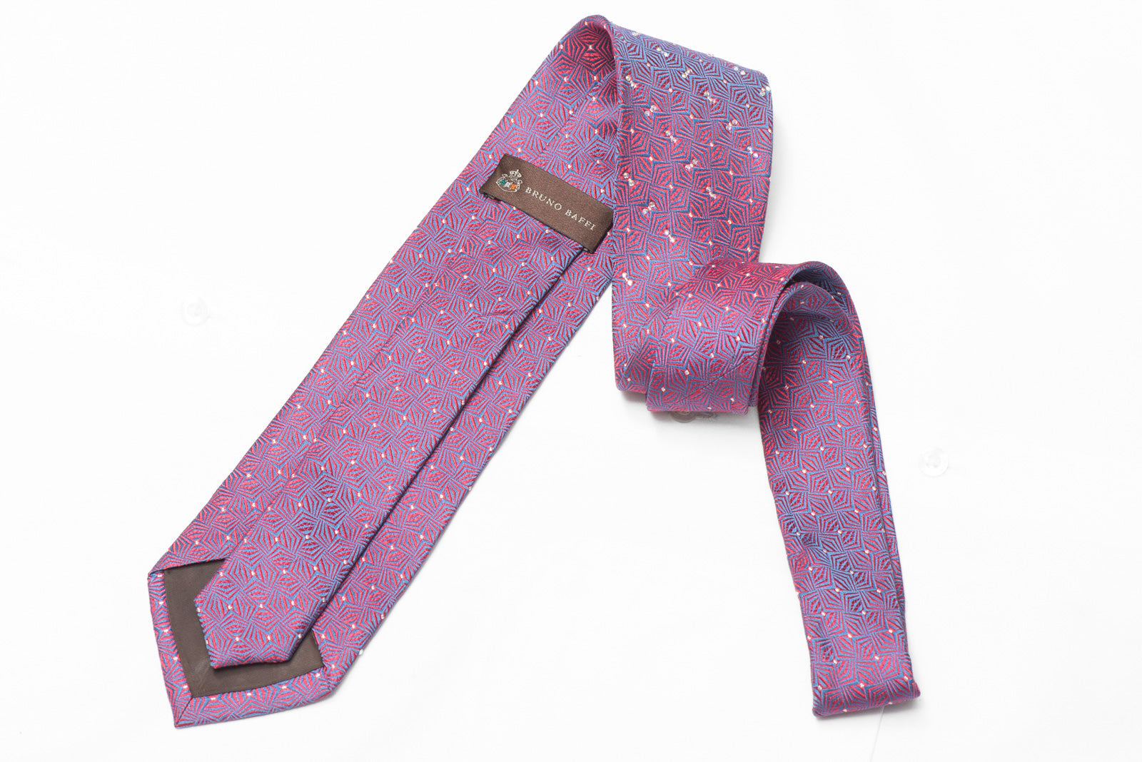 Add a touch of sparkle to your wardrobe with our Blue Pink Geometric Rhinestone Silk Necktie. This piece features a playful geometric pattern and shimmering silver accents. Perfect for adding some fun and style to any outfit!