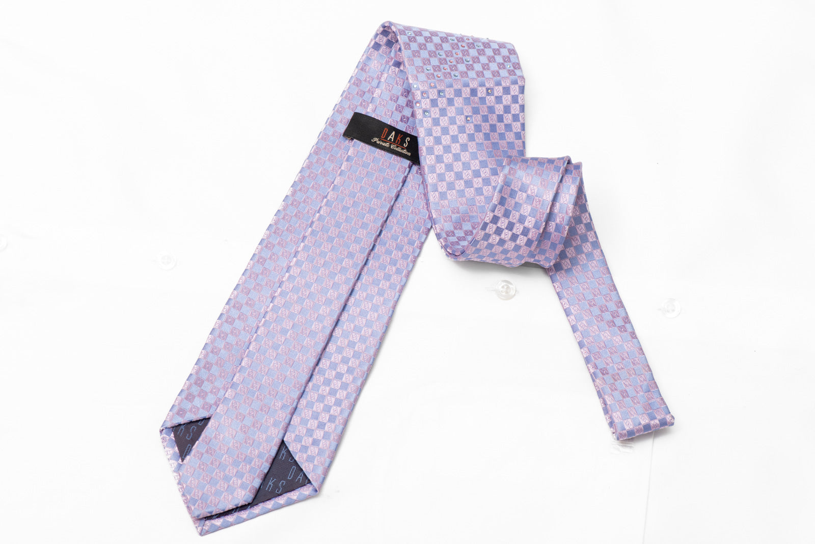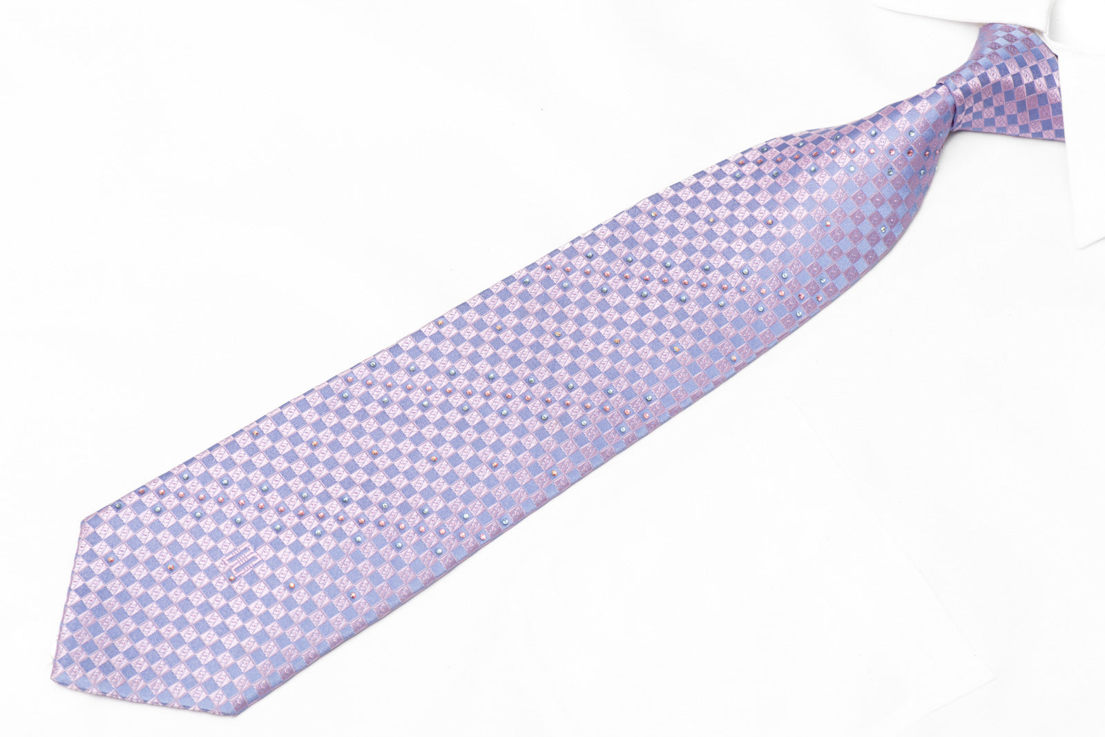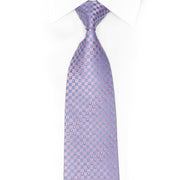 Elevate your ensemble with this mauve silk tie featuring a refined checkered pattern adorned with shimmering rhinestones and silver sparkles.